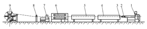 كما يتبين من الشكل 1، تتكون معدات بثق الأنابيب بشكل أساسي من خزان مياه التبريد،وحدة السحب, القاطع, com.com.coiler، أو طاولة التفريغ.